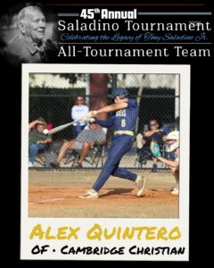 “I made a slight swing adjustment and felt really confident with it,” said Plusquellic, who tagged a Saladino Tourney-tying three home runs with 12 runs batted in. “I just came in trying to put together good at-bats and ended up having a good week. We had a lot of fun out here.”